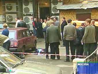 Место убийства главы компании "Алмаз-Антей" Игоря Климова. Кадр НТВ, архив