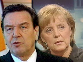Герхард Шредер и Ангела Меркель, кадры Первого канала, архив