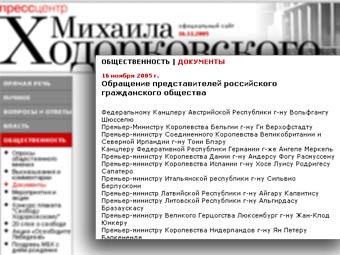 Скриншот с сайта http://www.khodorkovsky.ru/ с текстом обращения
