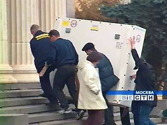 Разгрузка прибывших из Швейцарии картин, кадр телеканала "Россия"