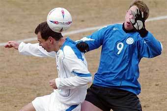 Россиянин Сергей Игнашевич (в белой форме) против эстонца Мартина Рейма. Фото AFP