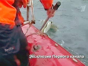 Спасатель вылавливает обломки А-320. Съемки "Первого канала" из района катастрофы