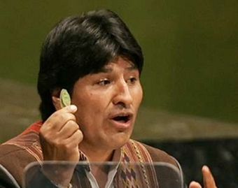 Размахивая листом растения, служащего сырьем для производства кокаина, Моралес обвинил США в использовании борьбы с наркоторговлей в качестве предлога для колонизации Латинской Америки.