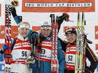 Французская биатлонистка выиграла спринт в Поклюке