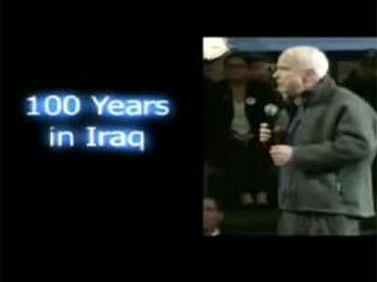В ролике, который называется "Сто лет в Ираке", Джордж Буш говорит о 50-летней войне в Ираке, а затем кандидат на президентский пост от республиканцев Джон Маккейн заявляет, что американские войска останутся в Ираке на сто лет, если понадобится. После этого диктор произносит: "Если то, что он предлагает, в два раза хуже, стоит ли выбирать Маккейна президентом?".