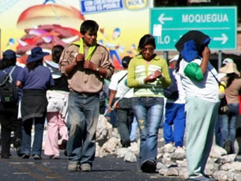 Напомним, около недели назад примерно пять тысяч жителей перуанского города Мокегуа (Moquegua) вышли на демонстрацию с требованием от правительства адекватного распределения налогов, полученных с доходов Южноперуанской меднодобывабщей корпорации (Southern Peru Copper Corporation), весьма успешно работающей в регионе. К 17 июня общее количество протестующих достигло двадцати тысяч и к этому времени им удалось перекрыть основную автомагистраль страны, соединяющую юг Перу с Чили. В результате этого некоторые районы стали испытывать нехватку продовольствия и горючего.