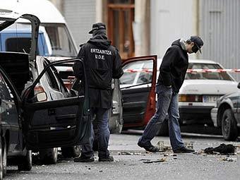 Полицейские Ertzaintza на месте одного из терактов. Фото AFP.
