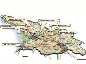 Расположение электростанций компании Energo-Pro Georgia на карте Грузии. Иллюстрация с сайта компании.