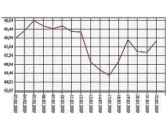 Центробанк России повысил официальный курс евро на 25 февраля 2009 года на 50 копеек. Стоимость европейской валюты выросла до 45,91 рубля. Курс доллара снизился на 5 копеек до 36,03 рубля. Стоимость бивалютной корзины, рассчитанная по официальным курсам, составила 40,47 рубля.