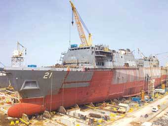 Строительство корабля ВМС США "Нью-Йорк". Фото с сайта www.constructionequipmentguide.com