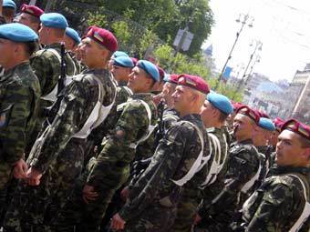 Десантники 45-го отдельного гвардейского ордена Александра Невского полка специального назначения РФ приняли участие в генеральной репетиции парада Победы, состоявшейся в Киеве 4 мая. Как сообщает корреспондент "Ленты.Ру", 75 гвардейцев прошли торжественным маршем в составе смешанной "коробки": вместе с ними маршировали украинские спецназовцы.