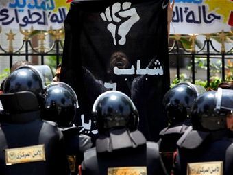 Египетские полицейские окружают демонстранта в центре Каира. Фото ©AP