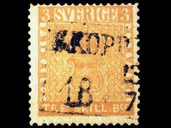 Эта марка, название которой можно перевести как "Трехскиллинговая желтая", была выпущена в Швеции в 1855 году и входит в число первых почтовых марок этой страны. На марке изображен герб Швеции, а своим названием она обязана стоимости в три скиллинга (мелкая монета, существовавшая в Скандинавии в XIX веке).