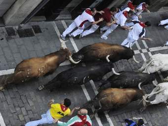 Во время бычьих бегов в Памплоне быков выпускают на улицу, и животные преследую толпу желающих поучаствовать в забегах. Расстояние, которое должны преодолеть участники бегов, составляет в 826 метров.