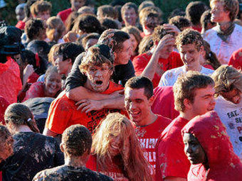 Всевозможные конкурсы по метанию пирогов с кремом регулярно проходят в разных городах мира. Предыдущий мировой рекорд по количеству участников побоища с выпечкой был установлен в августе 2009 года в Англии, где схлестнулись 253 человека, "вооруженные" изделиями из теста с кремовой начинкой.