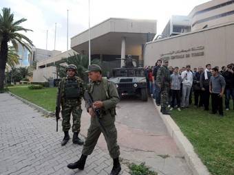 Солдаты у здания Центрального банка Туниса. Фото ©AFP