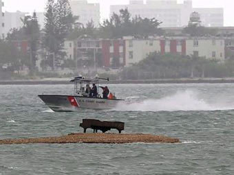 На песчаной отмели в заливе Бискейн в Майами, штат Флорида, где недавно был обнаружен старый рояль, появились новые предметы мебели и другие вещи.