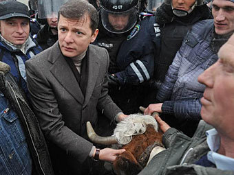 Парламентарий попытался провести корову в Раду, однако был остановлен стоявшими в оцеплении спецназовцами. Не добившись желаемого, Ляшко отвел Карину обратно к машине, на которой ее привезли.