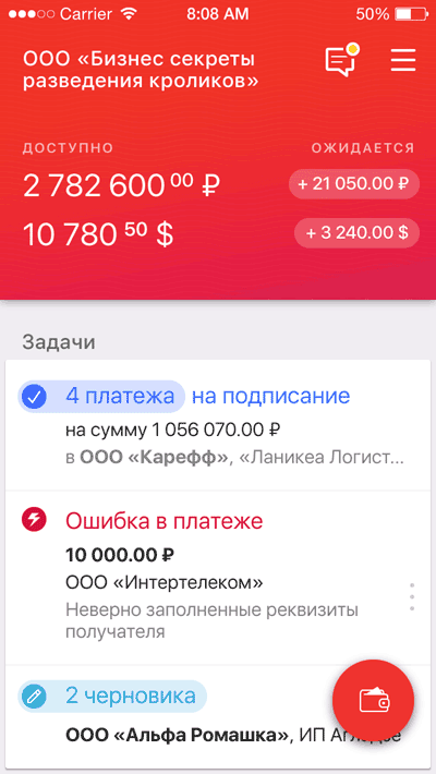 Мобильный банк позволяет управлять счетами бизнеса в одно касание: показывает остатки и выписки по счетам, статус и хронологию всех совершенных платежей. Контроль, разумеется, возможен в любом месте, где есть интернет, и в любое время, без выходных и обеда. Ряд банков, в том числе и Альфа-Банк, расширили функционал мобильного банкинга, предусмотрев возможность проводить платежи и отправлять контрагентам PDF исполненных платежек, что ранее практически не было доступно в мобильных приложениях. Кроме того, обновленный мобильный банк позволяет получать push-уведомления о движениях денежных средств. Это краткие всплывающие оповещения, которые появляются на экране мобильного телефона и сигнализируют о важных событиях и обновлениях, позволяя не заходить лишний раз в ту или иную программу.