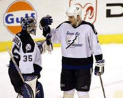 В чемпионате НХЛ среди матчей минувшего игрового дня следует особо выделить игры "Тампа-Бэй"-"Филадельфия" 2:1 и "Рейнджерс"-"Ванкувер" 4:3. "Тампа-Бэй" у себя дома принимала одного из лидеров регулярного чемпионата "Филадельфию". После долго отстутсвия в воротах "Лайтингс" наконец-то появился российский голкипер Николай Хабибулин. Хабибулин великолпно отыграл всю встречу, сделав 18 сейвов из 19 возможных, и принес своей победе заслуженную победу 2:1.