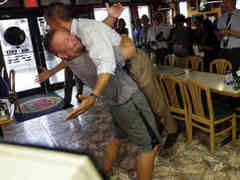 Горячий прием ожидал президента США Барака Обаму в пиццерии Big Apple Pizza & Pasta Restaurant в городе Форт Пирс, штат Флорида. Владелец ресторана, приветствуя политика, крепко обнял его и поднял высоко над землей. Обама в шутку спросил у хозяина пиццерии, не является ли тот пауэрлифтером. |