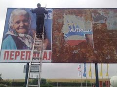 Билборд с изображением бабушки и кота, который ранее со скандалом демонтировали в украинском Днепродзержинске, был размещен в другом городе. Плакат с надписью "Узнала что внук проголосовал за "регионы", переписала дом на кота" появился в Тернополе. Кто именно и на чьей рекламной площади разместил его, не уточняется. | Янукович отказался от евроинтеграции любой ценой