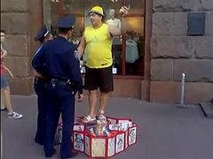 Украинские милиционеры, попытавшиеся проверить документы у уличного артиста во время его выступления на Крещатике, вынуждены были прослушать лекцию о политической жизни страны. Соответствующее видео выложил на сайте Youtube один из очевидцев произошедшего. Реплики артиста публика встретила одобрительными возгласами....