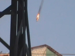 Сирийские повстанцы разместили на сервисе YouTube видеозапись уничтожения боевого вертолета правительственных сил. На первых кадрах записи вертолет оставляет за собой шлейф дыма, потом на нем начинается пожар, машина заваливается на нос, теряет управление и падает, объятая пламенем....