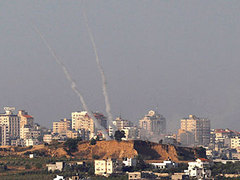 Движение ХАМАС сорвало перемирие с Израилем, запланированное в связи с визитом в Газу премьер-министра Египта Хишама Кандиля. Вскоре после того, как Кандиль прибыл в Газу, по территории Израиля было выпущено несколько десятков ракет. В ответ израильские ВВС нанесли новые удары по сектору Газа. | Израиль прекратит обстрелы палестинцев ради египетского премьера Израиль прекратит обстрелы сектора Газа на время визита египетского премьер-министра Хишама Кандиля 16 ноября. Это решение премьер-министр Израиля Биньямин Нетаниягу принял в ответ на запрос египетской стороны. Визит главы правительства Египта должен продлиться около трех часов. |