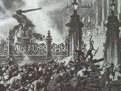 В Австралии составители итогового экзамена для школьников добавили в качестве иллюстрации к тесту картинку, где в штурме Зимнего дворца принимает участие боевой робот Battle Mech Marauder из компьютерной игры Mech Warrior 2. Основой для коллажа стала картина художника Николая Кочергина "Штурм Зимнего дворца". |