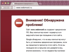 На сайте газеты "Ведомости" может содержаться вредоносное программное обеспечение. Сообщение об этом появилось 10 октября у некоторых пользователей браузеров Google Chrome и Firefox. Представители газеты не смогли указать причин сбоя, но сообщили, что программисты уже работают над его устранением. |
