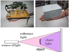 Японские инженеры собрали из вебкамеры, небольшого лазера и пинхол-линзы портативный голографический микроскоп, способный записывать трехмерное изображение с разрешением около 17 микрон. Трехмерное изображение на основе данных веб-камеры восстанавливается в реальном времени на компьютере. |