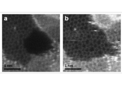Исследователи из лаборатории Константина Новоселова засняли процесс спонтанного восстановления дыр в графене. Пограничные атомы у краев дефекта образовывали новые связи и зашивали его новыми циклами. При правильном химическом окружении на месте дыры появлялась практически идеальная графеновая "заплатка". | Ароматы темной материи решили загадки гало