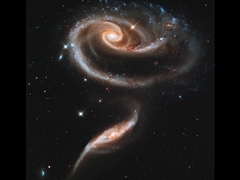 Космический телескоп "Хабл" получил изображение "космической розы" - пары взаимодействующих галактик в созвездии Андромеды. По словам астрономов, какое-то время назад меньшая из галактик прошла сквозь более крупную и исказила ее внешний вид, а также стимулировала образование новых звезд. | Глава подразделения NASA высказал предположение о находке "Кьюриосити"