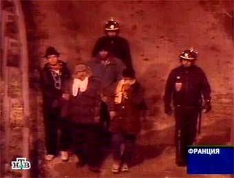 Французская полиция задерживает нелегальных иммигрантов в туннеле под Ла-Маншем. Кадр НТВ, архив