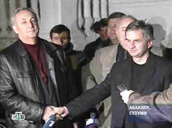 Сергей Багапш и Рауль Хаджимба. Кадр НТВ