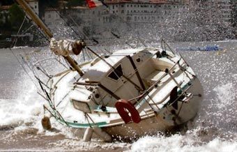 Согласно данным, поступившим с борта "Эрики", мачта яхты от сильного ветра переломилась, судно перевернулось, и его пассажиры сейчас находятся в воде. Они держатся за киль, стараясь, чтобы их не унесло в море.