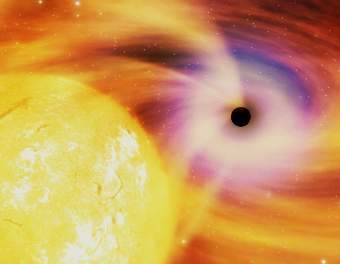 Расчеты астрофизиков показывают, что так может закончиться существование двойной системы, образованной массивными сверхплотными объектами. Однако слияние двух нейтронных звезд выглядело бы иначе - такое событие Swift заметил еще в мае этого года. Следовательно, остается единственная альтернатива: поглощение нейтронной звезды черной дырой.