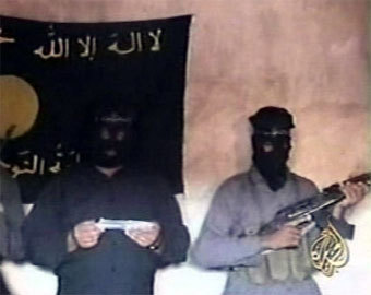 Иракские боевики зачитывают заявление. Кадр "Аль-Джазиры", переданный в эфире НТВ, архив