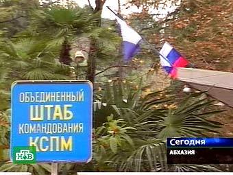 База российских миротворцев в Гудауте. Кадр телеканала НТВ.