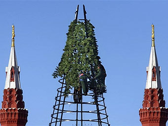 Монтаж новогодней елки в центре Москвы. Фото AFP