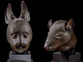 Бронзовые головы кролика и крысы. Иллюстрация с сайта Christie's
