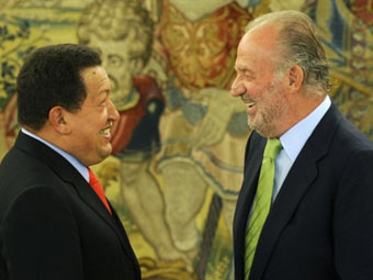 В 2007 году во время международного саммита между королем Испании и президентом Венесуэлы произошел публичный конфликт. Уго Чавес критиковал испанское правительство, в ответ на что король порекомендовал ему "заткнуться". Испания и Венесуэла помирились лишь летом 2008 года, после чего Чавес в своем телевизионном шоу "Алло, президент" заявил, что хотел бы обнять короля в знак примирения. Обнялись ли главы государств во время визита Чавеса в Испанию, не сообщается.