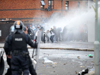 В участников парада и сопровождавших их полицейских протестующие из числа католиков кидали бутылки с "коктейлями Молотова" и булыжники, сообщает AFP. Полиция пыталась остановить беспорядки при помощи резиновых пуль и брандспойтов.