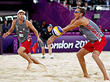 Прокопьев и Семенов уступили Хойеру и Шевалье со счетом 26:28, 21:18, 13:15. На матчболе швейцарский игрок на подаче отправил мяч за пределы площадки, однако судья, изучив отпечаток на песке, принял решение отдать очко, а с ним и встречу, швейцарцам. Бурные протесты россиян ни к чему не привели.